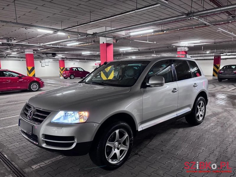 Sprzedam Volkswagen Touareg 5.0 V10 Diesel, 2003 rok produkcji (samochód zakupiony w salonie w Niemczech 30 maja 2003). W roku 2005.11.28 zarejestrowany w Polsce przez drugiego właściciela. Użytkowany w firmie handlowej jako auto rezerwowe/zastępcze.Samochód bezwypadkowy serwisowany w ASO do roku 2006 (książka serwisowa), późniejsze serwisy w warsztatach nieautoryzowanych przez VW (faktury i historia do wglądu). Pełna dokumentacja fabryczna. Dwa komplety kluczy + pilot do bramy.Pojazd, zadbany utrzymany w dobrym stanie technicznym.Silnik zapala bez najmniejszych problemów nawet w największe mrozy (wymieniono w styczniu 2026 dwa akumulatory . Pracuje równo, charakteryzuje się sporą dynamiką (313 KM). Skrzynia biegów płynnie zmienia przełożenia. Nie szarpie i nie przeciąga.Zawieszenie pneumatyczne w pełni sprawne (regenerowane przednie amortyzatory oraz pompa kompresora). Napędy (4x4) sprawne, pojazd prowadzi się bardzo dobrze (w roku 2025 wykonano wszystkie wymagane naprawy).Z ważniejszych napraw:Regeneracja przekładni kierowniczej, drążek, osłona, końcówka kierowniczaRegeneracja miechów zawieszenia 1-szej osiNaprawa pompy zawieszenia pneumatycznegoWahacze, łączniki drążka stabilizatora przódRegeneracja alternatora, obudowa termostatuNaprawa z wymianą tarcz 1-szej i 2-giej osiWymiana oleju i filtra w skrzyni biegówWymiana oleju i filtrów (paliwa, oleju, powietrza, kabiny)Wymiana oleju w dyferencjale przód i tyłWymiana dwóch akumulatorówSamochód dobrze się prezentuje jak na swój wiek co potwierdzają zdjęcia dołączone do ogłoszenia.Udostępniam faktury na wykonane naprawy oraz raport z carVerticalHak wbity w dowód rejestracyjnyPrzegląd ważny do 25.11.2026Polisa OC ważna do 26.09.2026Komplet kół letnich 19”Wyposażenie:- Immobiliser- Elektryczne lusterka- Elektrycznie składane lusterka- Skórzana tapicerka- Światła xenonowe- Wspomaganie kierownicy- Elektrycznie regulowana kierownica- Kierownica wielofunkcyjna- Radio fabryczne CD- Podgrzewana tylna szyba- Centralny zamek- Poduszki powietrzne kierowcy i pasażera- Poduszki powietrzne boczne przód- Poduszki powietrzne boczne tył- Poduszki powietrzne kurtynowe- Przyciemniane szyby- Pneumatyczne zawieszenie- Klimatronik 2 strefowy- Relingi- Hak- Nawigacja- Kompresor do kół- Elektrycznie ustawiane fotele- Elektrycznie regulowane podparcie lędźwi- Elektrycznie regulowana wysokość pasów- Napęd 4x4Specyfikacja producenta (samochód z salonu niemieckiego maj 2003)